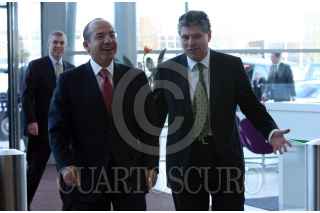 ABERDEEN, ESCOCIA, 31MARZO2009.- El presidente de México, Felipe Calderón Hinojosa, continua su gira de trabajo por el continente europeo, donde visitó las oficinas centrales de British Petroleum North Sea Headquaters, para conocer la forma como operan. FOTO: ALFREDO GUERRERO/CUARTOSCURO.COM