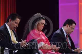 MÉXICO, D.F., 31MARZO2009.- Los líderes partidistas Beatriz Paredes PRI, German Martñinez PAN y Jesús Ortega PAN dieron conversaron ante cientos de jóvenes asistentes a espacio universitario que se realiza en el World Trade Centrer. FOTO: SÁSHENKA GUTIERREZ/CUARTOSCURO.COM