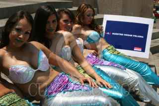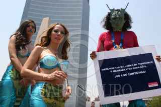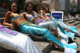 MÉXICO D.F., 31MARZO2009.- Activistas del grupo "WILDCOAST/COSTASALVAJE" vestidas de sirenas se manifestaron sobre Paseo de la Reforma, para pedir a las autoridades correspondientes, tomen acciones para proteger mas especies de tiburones, ya que según ellos las flotas de barcos atuneros arrasan con la vida marina. FOTO: RICARDO CASTELAN/CUARTOSCURO.COM