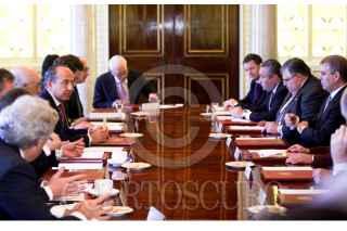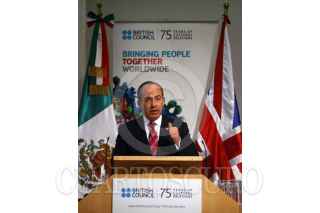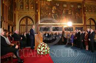 LONDRES, INGLATERRA, 01ABRIL2009.- Felipe Calderón, Presidente de México en compañía de Margarita Zabala, primera dama de México durante su intervención ante miembros de ambas cámaras del Parlamento del Reino Unido que tuvo lugar en el Trust Lecture Theater de la Royal Society. FOTO: ARIEL GUTIERREZ/CUARTOSCURO.COM
