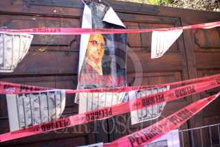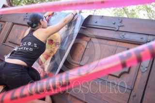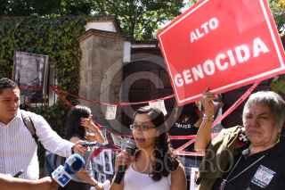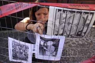 MÉXICO , D.F., 01ABRIL2009.- Lucía Moret, la estudiante que logro salir con vida de un ataque a los campamentos de las FARC en la frontera de Ecuador y Colombia, participó en la protesta para condenar la exculpación de Luis Echeverría por los sucesos de 1968, que realizó en la organización H.I.J.O.S. afuera de la casa del ex-presidente en la colonia San Jeronimo Lidice. FOTO: MOISÉS PABLO/CUARTOSCURO.COM