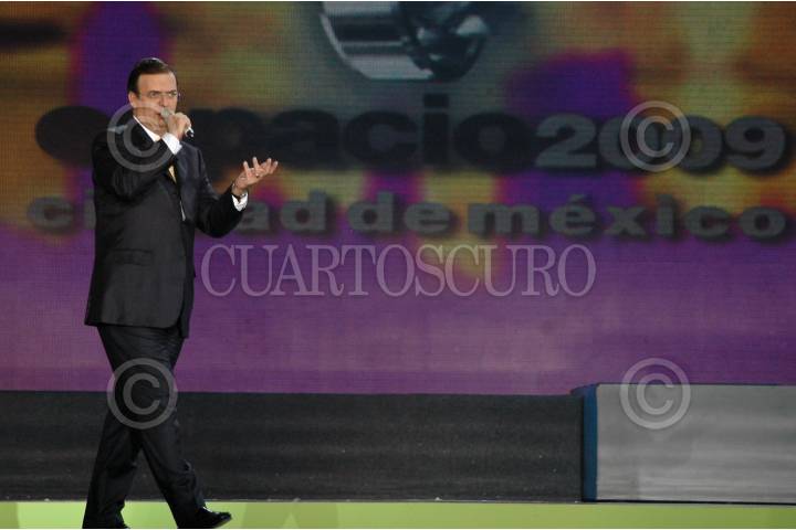 MÉXICO, D.F., 02ABRIL2009.- Marcelo Ebrard, jefe de gobierno del D.F., durante su mensaje en la sala principal de Espacio 2009 en la que le dio la bienvenida a cientos de jóvenes universitarios que asisten de todas partes del país; este evento tiene sede en el World Trade Center. FOTO: RODOLFO ANGULO/CUARTOSCURO.COM