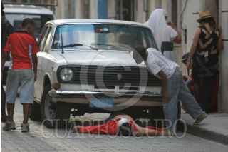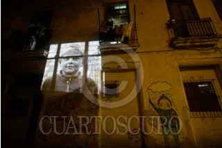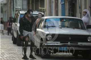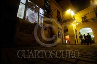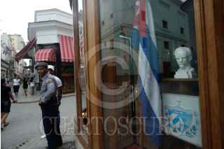 LA HABANA, CUBA, 02ABRIL2009.- Bandera y estatuilla de José Martín al lado un policía vigila las calles de la vieja Habana. FOTO: MAX NÚÑEZ /CUARTOSCURO.COM