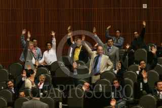 MÉXICO D.F., 02ABRIL2009.- Diputados del PRD, emiten su voto durante la sesión ordinaria en la Cámara de Diputados, donde fue aprobado por unanimidad las adiciones al Código Penal Federal, esto con el fin de proteger el ejercicio de la libertad de expresión y agilizar la investigación de agresiones contra periodistas. FOTO: GUILLERMO PEREA/CUARTOSCURO.COM
