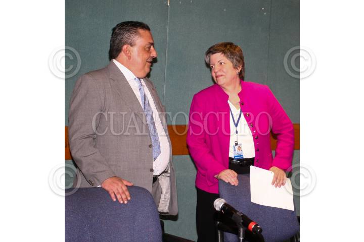 JIUTEPEC, MORELOS 02ABRIL2009.- Eduardo Medina Mora conversa con Eric Holder procurador de Estados Unidos, durante la conferencia de prensa que ofrecieron a los medios de comunicación, después de una reunión privada que sostuvieron entre autoridades de seguridad de México y Estados Unidos. FOTO: SAÚL LÓPEZ ESCORCIA/CUARTOSCURO.COM