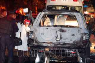 MÉXICO, D.F., 03ABRIL2009.- Dos personas calcinadas fueron encontradas dentro de una camioneta Pathfinder, que se incendio, minutos después de las tres de la mañana sobre av. México en el Barrio San Marcos en la delegación Xochimilco. FOTO: LUZ ACEVEDO/CUARTOSCURO.COM