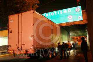 MÉXICO, D.F., 03ABRIL2009.- Un trailer que transportaba seis toneladas de papel higiénico, se quedo atorado en el paso a desnivel del Viaducto Miguel Alemán y av. Patriotismo, provocando el cierre de esta arteria por mas de tres horas. FOTO: LUZ ACEVEDO/CUARTOSCURO.COM