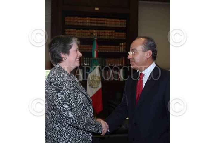 MÉXICO, D.F., 03ABRIL2009.- Eric Holder, procurador de Estados Unidos, Janet Napolitano, Secretaría de Seguridad Interior de los Estados Unidos y Felipe Calderón, Presidente de México, se reunieron en privado en la residencia oficial de Los Pinos. FOTO: ALFREDO GUERRERO/CUARTOSCURO.COM