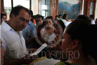 CHILPANCINGO, GUERRERO, 04ABRIL2009.- Aspecto general de la "Entrega de Aparatos Funcionales" que realizo la señora Mercedes Calvo de Astudillo presidenta del DIF municipal a personas de la tercera edad y niños de escasos recursos económicos, este viernes por la tarde en el interior del Palacio Municipal, donde estuvo acompañada por su esposo el alcalde Héctor Astudillo Flores. FOTO: OSCAR ALVARADO/CUARTOSCURO.COM