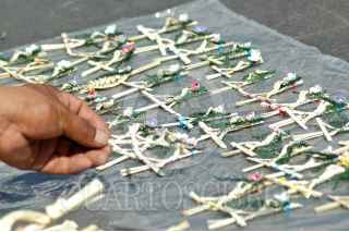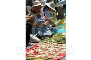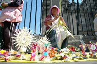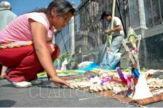 MÉXICO, D.F., 05ABRIL2009.- Cientos de vendedores ofrecen cruces y demas artículos religiosos hechos con palmas al rededor de la Catedral Metropolitana en este domingo de ramos con el que oficialmente comienza la semana mayor de la Semana Santa. FOTO: RODOLFO ANGULO/CUARTOSCURO.COM