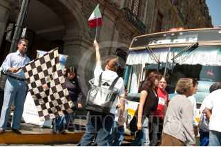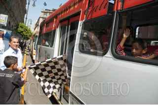 MÉXICO, D.F., 05ABRIL2009.- Alejandro Rojas Diaz Dura dio el banderazo de salida a autobuses del RTP como parte del Programa “Turismo para ti” dirigido a personas de escasos recursos para que puedan disfrutar gratuitamente de los sitios turísticos que hay en la ciudad. Este programa operará del 5 al 19 de abril con 50 rutas que recorrerán sitios turísticos en toda la ciudad. FOTO: RODOLFO ANGULO/CUARTOSCURO.COM