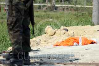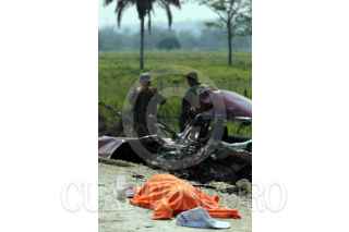 MACUSPANA, TABASCO, 05ABRIL2009.- Una bebe de apenas dos años de edad pierde la vida en un accidente carretero a la altura del kilómetro 59 de la autopista Villahermosa-Escárcega. En dicho lugar militares dan ayuda sobre la cinta asfáltica, mientras que los padres de la occisa fueron trasladados al municipio de Catazaja, Chiapas gravemente heridos, por su parte el responsable del hecho quien invadió carril contrario al dormirse se dio a la fuga. FOTO: MARCO POLO GUZMÁN HERNÁNDEZ/CUARTOSCURO.COM