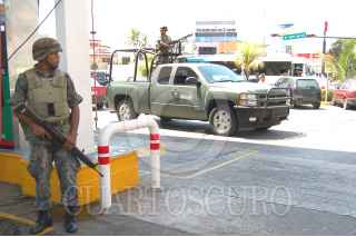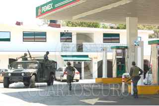 ACAPULCO, GUERRERO 06 ABRIL2009.- Elementos del 56 batallón de infantería realizaron una revisión minuciosa a todo vehÍculo sospechoso, sin placas y con vidrios polarizados en una gasolinera del puerto, y sus alrededores causando expectación a turistas nacionales que en esos momentos pasaban por la zona costera Miguel Alemán FOTO: MARINO D. VALDEZ/CUARTOSCURO.COM