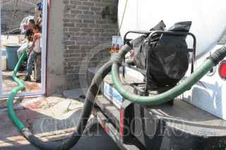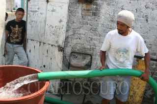 MÉXICO, D.F., 08ABRIL2009.-Decenas de pipas recorren la delegacion Iztapalapa para surtir de agua a cientos de capitalinos que sufrirán la falta del vital liquido por el tercer corte del suministro del sistema Cutzamala. FOTO: RICARDO CASTELAN/CUARTOSCURO.COM