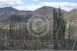 ZAPOTÍTLAN, PUEBLA, 09ABRIL2009.- El municipio de Zapotítlan pertenece a dos regiones morfológicas: el noreste forma parte del Valle de Tehuacán y el resto de la sierra de Zapotitlán. En el lugar abundan las cactáceas en distintas especies. Este municipio cuenta con carreteras y caminos, pero no medios de transporte público por lo que la población tiene que caminar o pedir "raid". FOTO: MARIO NULO/CUARTOSCURO.COM