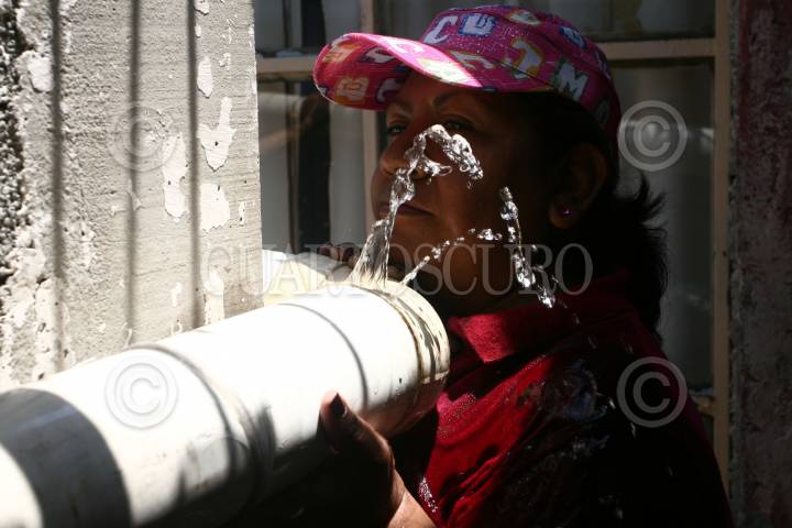MÉXICO, D.F., 09ABRIL2009.- La familia Sánchez Martinez ubicada en la calle de Carril lote 12 en la colonia San Miguel Teotongo de la delegación Iztapalapa, tuvieron la necesidad de comprar tubos de pvc e invertir más de 2,000 pesos para improvisar una tuberia aerea para llevar agua a su cisterna. Leticia Sánchez, aseguró que la poca agua que reparten las pipas llega muy sucia. FOTO: SAÚL LÓPEZ/CUARTOSCURO.COM