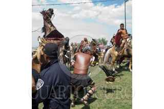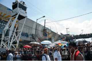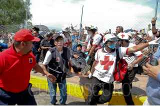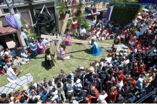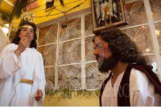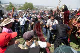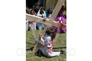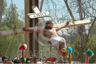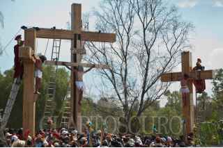 MÉXICO, D.F., 10ABRIL2009.- Jesús de Nazareth interpretado por el joven Diego Zirahuen Villagrán es crucificado al lado de dos ladrones al termino de la tradicional representación del viacrucis de La Pasión en Iztapalapa. FOTO: RODOLFO ANGULO/CUARTOSCURO.COM