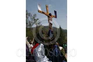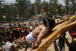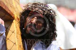 MÉXICO D.F., 10ABRIL2009.- Un perro camina al costado del vecino que representa a Cristo durante la Trigésimo Novena edición en la representación de la Pasión de Cristo, esto en Cuautepec donde la repreesentación es ya toda una tradición en este lugar. FOTO: GUILLERMO PEREA/CUARTOSCURO.COM