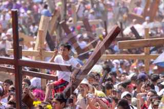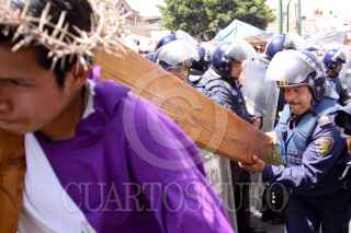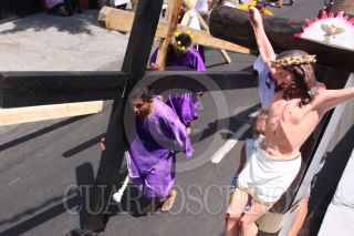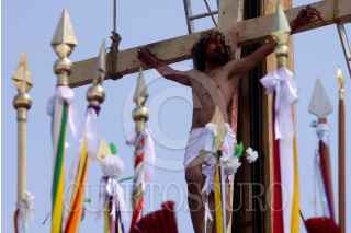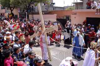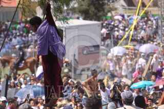 MÉXICO, D.F., 10ABRIL2009.- Diego Zirahuen Villagrán, quien interpretó a Jesús de Nazaret en el Vía Crucis de Iztapalapa, cumplió con el ritual al ser crucificado en el Cerro de la Estrella en la CLXVI representación. FOTO: MOISÉS PABLO/CUARTOSCURO.COM