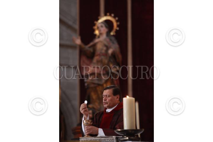 MÉXICO, D.F., 10ABRIL2009.- El cardenal Norberto Rivera Carrera oficio esta tarde la misa de la cruz y que trata sobre la Pasión y la Muerte de Jesucristo, por tal motivo en todas la iglesias las iglesias cubren a los cristos en señal de luto, todo esto se suma a las celebraciones por la semana santa FOTO: SÁSHENKA GUTIERREZ/CUARTOSCURO.COM