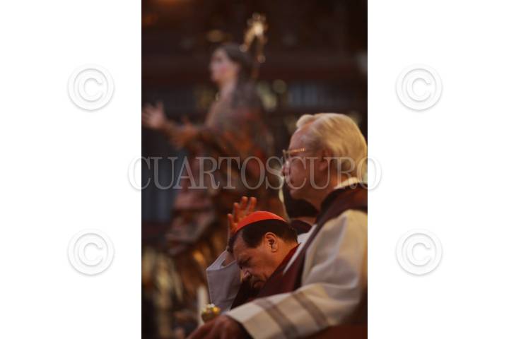 MÉXICO, D.F., 10ABRIL2009.- El cardenal Norberto Rivera Carrera oficio esta tarde la misa de la cruz y que trata sobre la Pasión y la Muerte de Jesucristo, por tal motivo en todas la iglesias las iglesias cubren a los cristos en señal de luto, todo esto se suma a las celebraciones por la semana santa FOTO: SÁSHENKA GUTIERREZ/CUARTOSCURO.COM