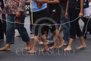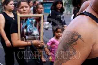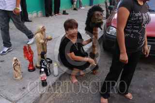 MÉXICO, D.F., 10ABRIL2009.- Decenas de fieles a la Santa Merte realizaron una procesión que partió de la iglesia del ángel de la muerte y término en la plancha del zócalo capitalino donde pidieron para exigir que sus altares no sean destruidos y en Oaxaca se permita que se procese esta creencia FOTO: SÁSHENKA GUTIERREZ/CUARTOSCURO.COM