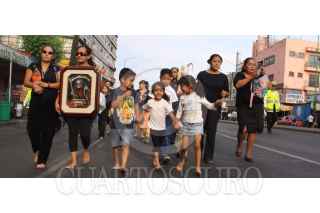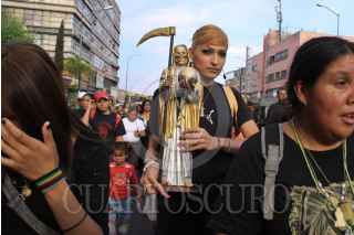 MÉXICO, D.F., 10ABRIL2009.- Decenas de fieles a la Santa Muerte realizaron una procesión que partió de la iglesia del ángel de la muerte y término en la plancha del zócalo capitalino donde pidieron para exigir que sus altares no sean destruidos y en Oaxaca se permita que se procese esta creencia FOTO: SÁSHENKA GUTIERREZ/CUARTOSCURO.COM