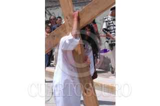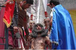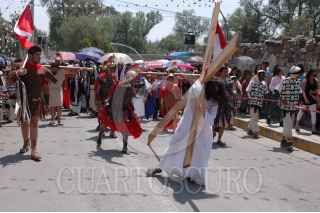 HUEYPOXTLA, ESTADO DE MÉXICO 10 ABRIL2009.- Año con año la tradición de la pasión y muerte de Jesús se realiza en el municipio ante decenas de personas se realiza el viacrucis donde los colonos del lugar representan a los personajes principales y secunarios para dar vida a este pasaje biblico. FOTO: MARIO NULO/CUARTOSCURO.COM