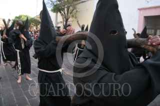 SANTIAGO DE QUERETARO, QUERETARO.- Como parte de las celebraciones de la semana santa se realizo la prosecion del silencio, donde penitentes circulan por las avenidas principales de la ciudad vistiendo con tunicas y capirote de distintos colores, dependiendo de las cofradias, dicha prosecion se festeja desde 1968. FOTO: EZEQUIEL TLAXCALA/CUARTOSCURO.COM