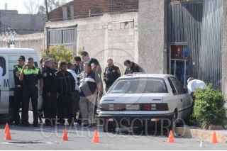 MÉXICO, D.F., 10ABRIL2009.- Un elemento de la Agencia de Seguridad Estatal (ASE) de nombre Fausto Gonzáles de 37 años fue ejecutado de al menos 50 tiros de distintos calibres en un vehículo Shadow placas 542-SUD donde viajaba FOTO: LUIS CARBAYO/CUARTOSCURO.COM