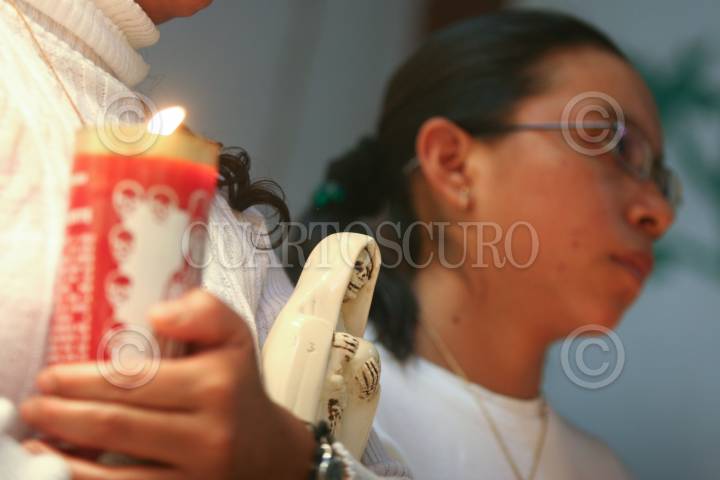 MÉXICO, D.F., 12ABRIL2009.- Una imagen de la Santa Muerte es llevada por un grupo de personas en una procesión desde el barrio de Tepito hasta las inmediaciones de la Basilica de Guadalupe en donde se manifestaron y gritaron consignas en contra del cardenal Norberto Rivera como protesta contra los ataques de la Iglesia católica, que la acusa de ser una secta y estar vinculada con narcotraficantes y para que se les permita profesar libremente su fe. FOTO: RODOLFO ANGULO/CUARTOSCURO.COM