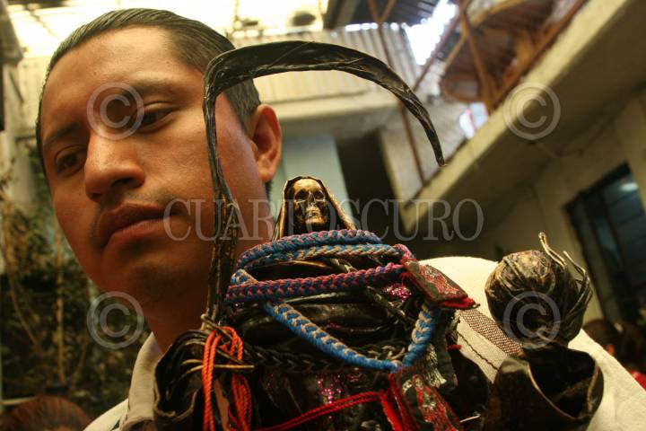 MÉXICO, D.F., 12ABRIL2009.- Una imagen de la Santa Muerte es llevada por un grupo de personas en una procesión desde el barrio de Tepito hasta las inmediaciones de la Basilica de Guadalupe en donde se manifestaron y gritaron consignas en contra del cardenal Norberto Rivera como protesta contra los ataques de la Iglesia católica, que la acusa de ser una secta y estar vinculada con narcotraficantes y para que se les permita profesar libremente su fe. FOTO: RODOLFO ANGULO/CUARTOSCURO.COM