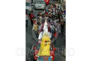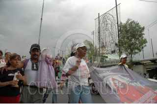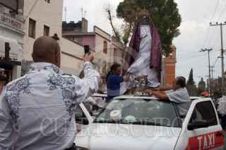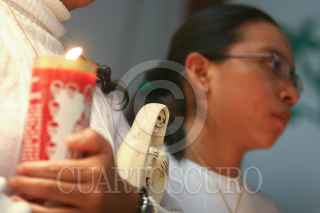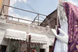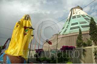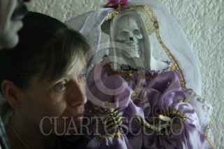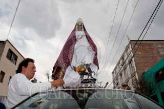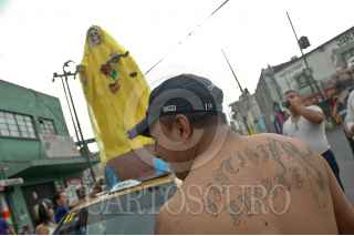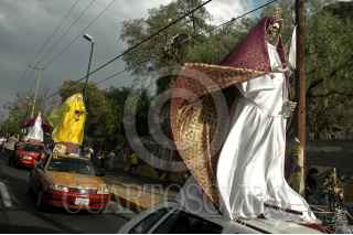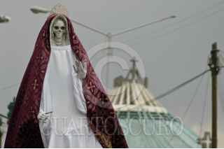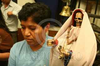 MÉXICO, D.F., 12ABRIL2009.- Una imagen de la Santa Muerte es llevada por un grupo de personas en una procesión desde el barrio de Tepito hasta las inmediaciones de la Basilica de Guadalupe en donde se manifestaron y gritaron consignas en contra del cardenal Norberto Rivera como protesta contra los ataques de la Iglesia católica, que la acusa de ser una secta y estar vinculada con narcotraficantes y para que se les permita profesar libremente su fe. FOTO: RODOLFO ANGULO/CUARTOSCURO.COM