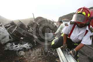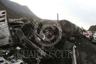 TEPEJI DEL RIO, HIDALGO.,13ABRIL2009.- Siete muertos, más de una veintena de heridos y al rededor de 15 vehículos accidentados, fue el saldo de un fuerte accidente donde explotó una pipa de leche, a la altura del kilómetro 80 de la autopista México Queretaro. Elementos de emergencia del municipio de Tepeji del Río, Distrito Federal, Estado de México y Policía Federal, participaron en el rescate de los cuerpos. FOTO: SAÚL LÓPEZ/CUARTOSCURO.COM
