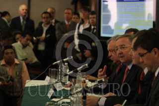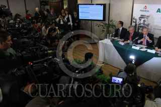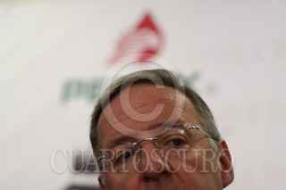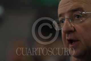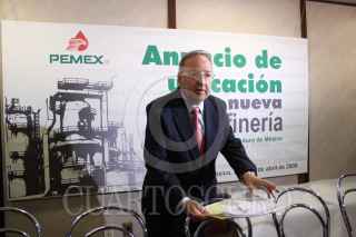 MÉXICO, D.F., 14ABRIL2009.- El director de Petróleos Mexicanos (Pemex), Jesús Reyes Heroles, en conferencia de prensa en la que le notificó la decisión del gobierno federal de favorecer a la ciudad de Tula con la construcción de la nueva refinería y se espera una inversión de 10 millones de dolares para dicha edificación FOTO: SÁSHENKA GUTIÉRREZ/CUARTOSCURO.COM