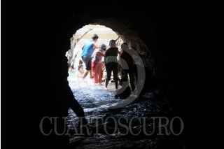 TEPECOACUILCO, GUERRERO, 14ABRIL2009.- Apantipan que en nahuatl significa "Lugar donde nace el agua" el cual se ubica a unos 15 kilómetros en camino de terraceria sobre la rivera del Río Balsas entrando por una desviación que esta antes de llegar al puente Mezcala por la carretera federal Chilpancingo-Iguala, donde los visitantes pueden disfrutar de cascadas subterraneas, lagunas de agua cristalina y borbollones, siendo una de las bellezas naturales con las que cuenta el estado de Guerrero, y que fue descubierta en el año de 1975 cuando la CFE intento construir en este punto la cortina de la presa El Caracol. Cabe mencionar que este balneario natural es parte de un proyecto ecoturistico de la zona centro del estado, el cual no ha recibido el apoyo necesario como la secretaria de fomento turístico del gobierno estatal ni de los gobiernos municipales que se esperaba y ha sido ignorado, por lo que es muy poco conocido por turistas nacionales y extranjeros, siendo una buena opcion en esta temporada de vacaciones para las personas a quienes les gusta la aventura, ya que es de un costo accesible y se esta en contacto con la naturaleza. FOTO: OSCAR ALVARADO/CUARTOSCURO.COM