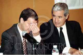 Enrique Borja (izq), acompañado por Rafael Lebrija, presentó esta mañana su renuncia con caracter de irevocable a la presidencia de la Federacion Mexicana de Futbol.