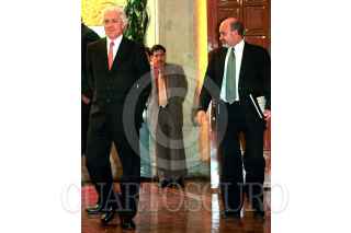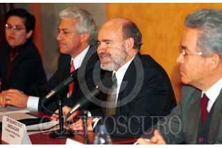 Eduardo Sojo, encabezo la conferencia de prensa en el salón Manuel Avila Camacho, en la residencia oficial de Los Pinos, en la que dieron a conocer los logros de la gira del presidente Vicente Fox a Europa. FOTO: Victoria Valtierra/CUARTOSCURO.COM