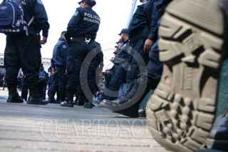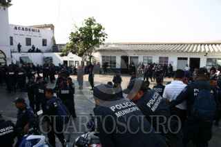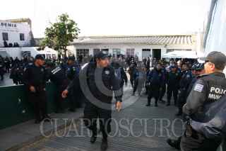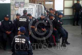 OAXACA, OAXACA 16ABRIL2009.-Por cuarta vez alrededor de 200 elementos de la policía municipal realizaron un paro de labores esta vez en su cuartel general ubicado a un costado del palacio municipal en el centro de la capital, ya que alegan que el equipo, armamento, bonos y dormitorios sus principales peticiones aun no han sido esclarecidas. FOTO: MAX NÚÑEZ/CUARTOSCURO.COM