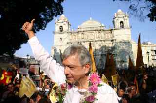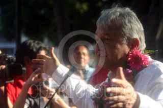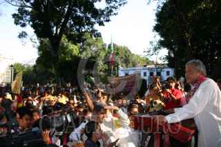 OAXACA, OAXACA 16ABRIL2009.-Andres Manuel López Obrador, presidente legitimo de México visito el estado Oaxaqueño en la defensa de la economía popular del estado, aunado a esto, el senador Salomón Jara, Gabino Cue, y la bancada local del PRD lo acompañaron donde se solidarizo con los familiares de la perredista asesinada en San Pedro Jicayan. FOTO: MAX NÚÑEZ/CUARTOSCURO.COM