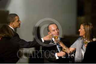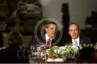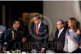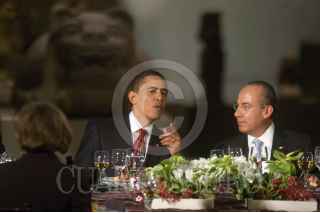 MÉXICO D.F., 16ABRIL2009.- Felipe Calderón Hinojosa, Presidente de México, acompañado de su esposa Margarita Zavala, ofreció una cena en honor a Barack Obama, Presidente de los Estados Unidos de America, dicha recepción se realizo en el Museo de Antopología e Historia. FOTO: GUILLERMO PEREA/CUARTOSCURO.COM