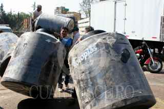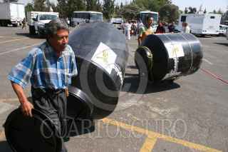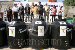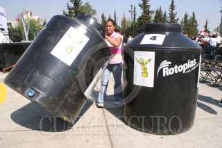 MÉXICO, D.F., 17ABRIL2009.- Decenas de capitalinos de las colonias el Pedregal de Santa Ursula y Pedrgal de Santo domingo, recibieron tinacos como parte del nuevo nuevo plan para contrarrestar los efectos de escasez de agua en la capital del país y este consiste en regalar tinacos de mil 100 litros de capacidad a familias de escasos recursos que viven en aquellas zonas donde es frecuente la falta del vital líquido. FOTO: RICARDO CASTELAN/CUARTOSCURO.COM