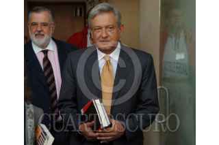 MÉXICO, D.F., 17ABRIL2009.- Andrés Manuel López Obrador a su salida al término de la reunión que sostuvo con el Presidente de la Comisión Nacional de Derechos Humanos, José Luís Soberanes en el edificio José FIX Zamudio de la CNDH en el sur de la Ciudad de México. FOTO: IVÁN MENDEZ/CUARTOSCURO.COM