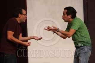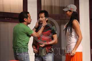 MÉXICO, D.F., 18ABRIL2009.- Freddy Ortega, Germán Ortega y Cecilia Galeano, durante los ensayos de la puesta en escena "Que No Se Entere el Presidente", bajo la dirección de Jorge Ortiz de Pinedo, en el teatro Aldama, FOTO: MOISÉS PABLO/CUARTOSCURO.COM