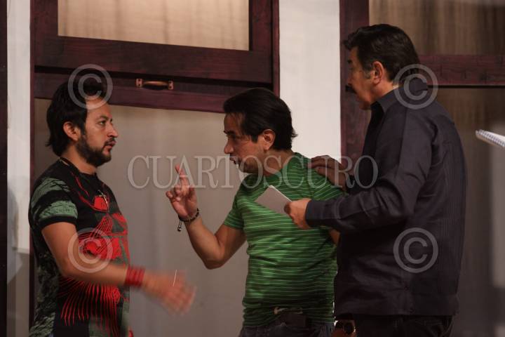 MÉXICO, D.F., 18ABRIL2009.- Freddy Ortega, Germán Ortega y Cecilia Galeano, durante los ensayos de la puesta en escena "Que No Se Entere el Presidente", bajo la dirección de Jorge Ortiz de Pinedo, en el teatro Aldama, FOTO: MOISÉS PABLO/CUARTOSCURO.COM