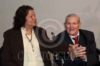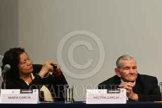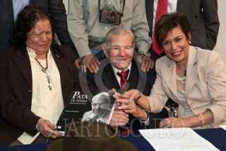 MÉXICO, D.F., 19ABRIL2009.- Los fotógrafos María y Héctor García, así como la periodista Norma Inés Rivera, durante la presentación del libro "Pata de Perro", biografía del maestro fotógrafo, que fue presentado esta tarde en el Palacio de Bellas Artes. FOTO: ISAAC ESQUIVEL/CUARTOSCURO.COM
