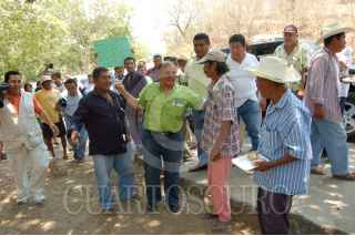 ACAPULCO, GUERRERO, 19ABRIL2009.- El alcalde de Acapulco, Manuel Añorve Baños en su recorrido por la ruta del sol donde anuncio importantes apoyos para campesinos del municipio, donde fue abordado en un reten que tienen instalado ejidatarios y comuneros integrantes del Consejo de Ejidos y Comunidades Opositores a la Presa La Parota (CECOP)” a quienes refrendo su compromiso de trabajar para un solo Acapulco. FOTO: MAINO D. VALDEZ/CUARTOSCURO.COM