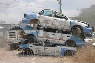 ECATEPEC, EDO. DE MÉXICO, 20ABRIL2009.- 398 vehículos del ayuntamiento fueron dados de baja por el Cabildo para desincorporar y vender como chatarra por kilo, informo José Antonio García Pérez, Coordinador de Patrimonio Municipal. Se venderán a la empresa Denchburg Recycling México, quien es la encargada de la compactación y trituración de los vehículos albergados en el predio municipal de Santa María Chiconautla. El Tesorero municipal, Edgar Antonio Martínez Zendejas, dio a conocer que se obtendrá $1.30 pesos por kilo de metal. Dado que el total de las unidades suman 278.6 toneladas, el monto de lo obtenido se ingresará a las arcas municipales y se utilizará para el apoyo de varios programas del gobierno local. FOTO: MARIO NULO/CUARTOSCURO.COM