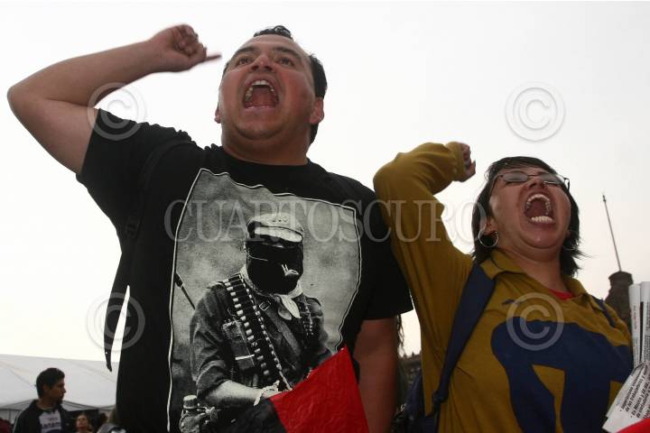 MÉXICO, D.F., 20ABRIL2009.- Estudiantes de la UNAM e integrantes de organizaciones sociales, realizaron una marcha del ángel de la independecnia hacia el zócalo, para conmemorar el decimo aniversario de la entrada de la PFP a rectoria de la UNAM. FOTO: SAUL LOPEZ/CUARTOSCURO.COM