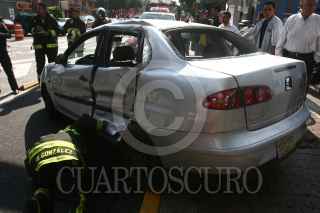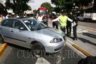 MÉXICO, D.F., 22ABRIL2009.- Un automóvil marca Seat Ibiza, se impacto contra el metrubús en la calle de Pitagoras y el eje 4 Xola en la colonia Narvarte. FOTO: SAÚL LÓPEZ/CUARTOSCURO.COM